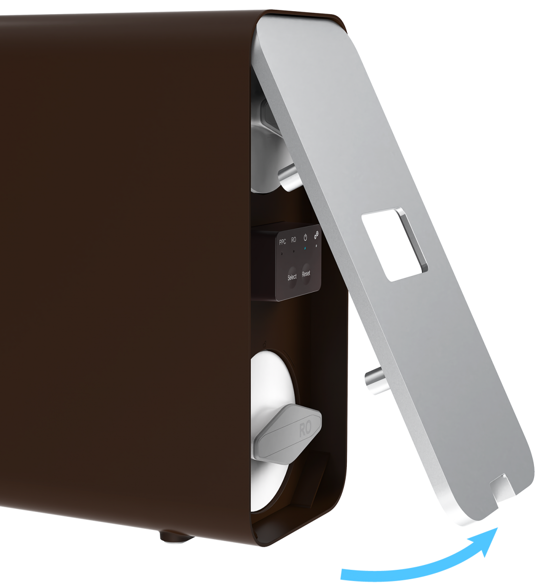 Replaces the filters effortlessly in just 3 seconds with the front-loading horizontal filter design.