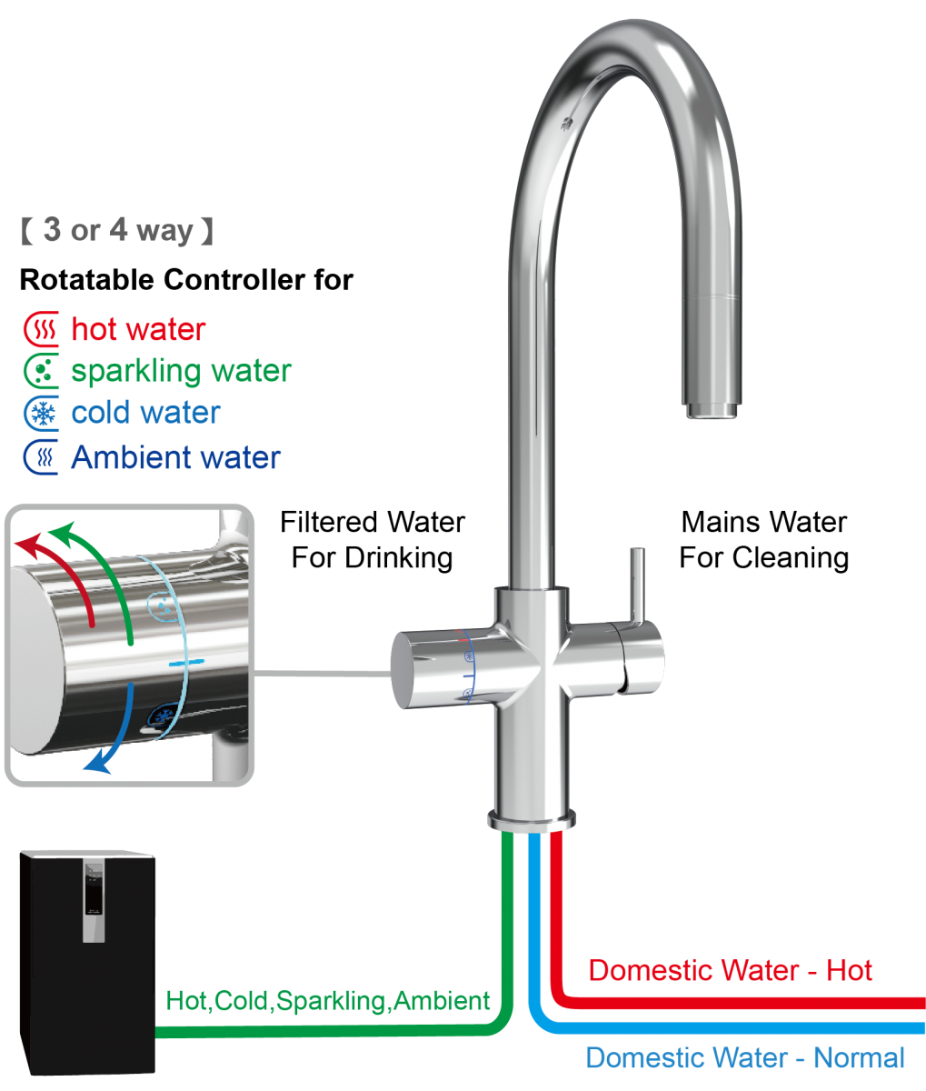 ● Left (Rotate Controller) - cold / sparkling / hot (ambient) water
