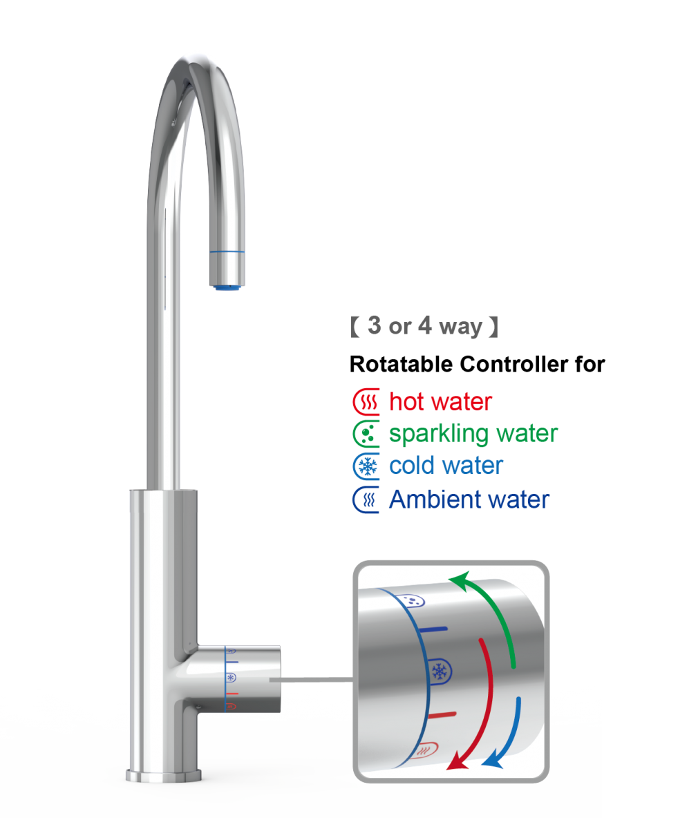 ● Left or Right (Rotate Controller) - cold / sparkling / hot (ambient) water