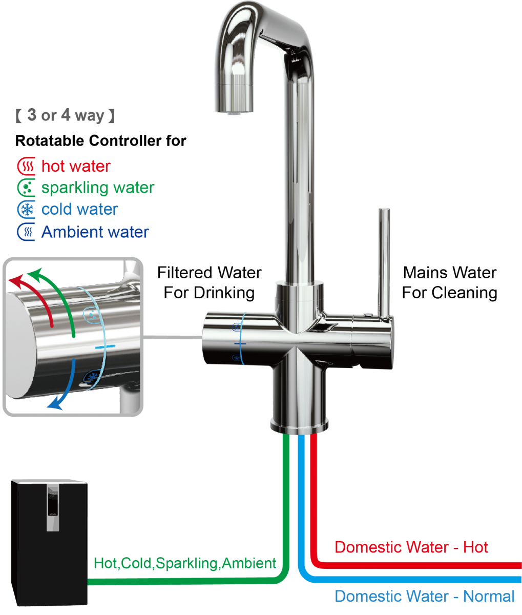 ● Left (Rotate Controller) - cold / sparkling / hot (ambient) water