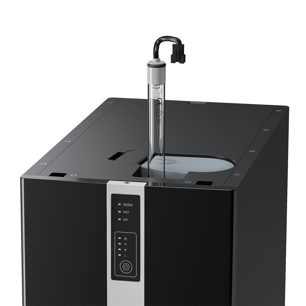 Instant-start UV sterilization operates while dispensing water. Replaceable high efficiency UV light eliminates 99.9% of germs without affecting the taste of cold / sparkling water due to temperature raise from traditional continuously on UV light.