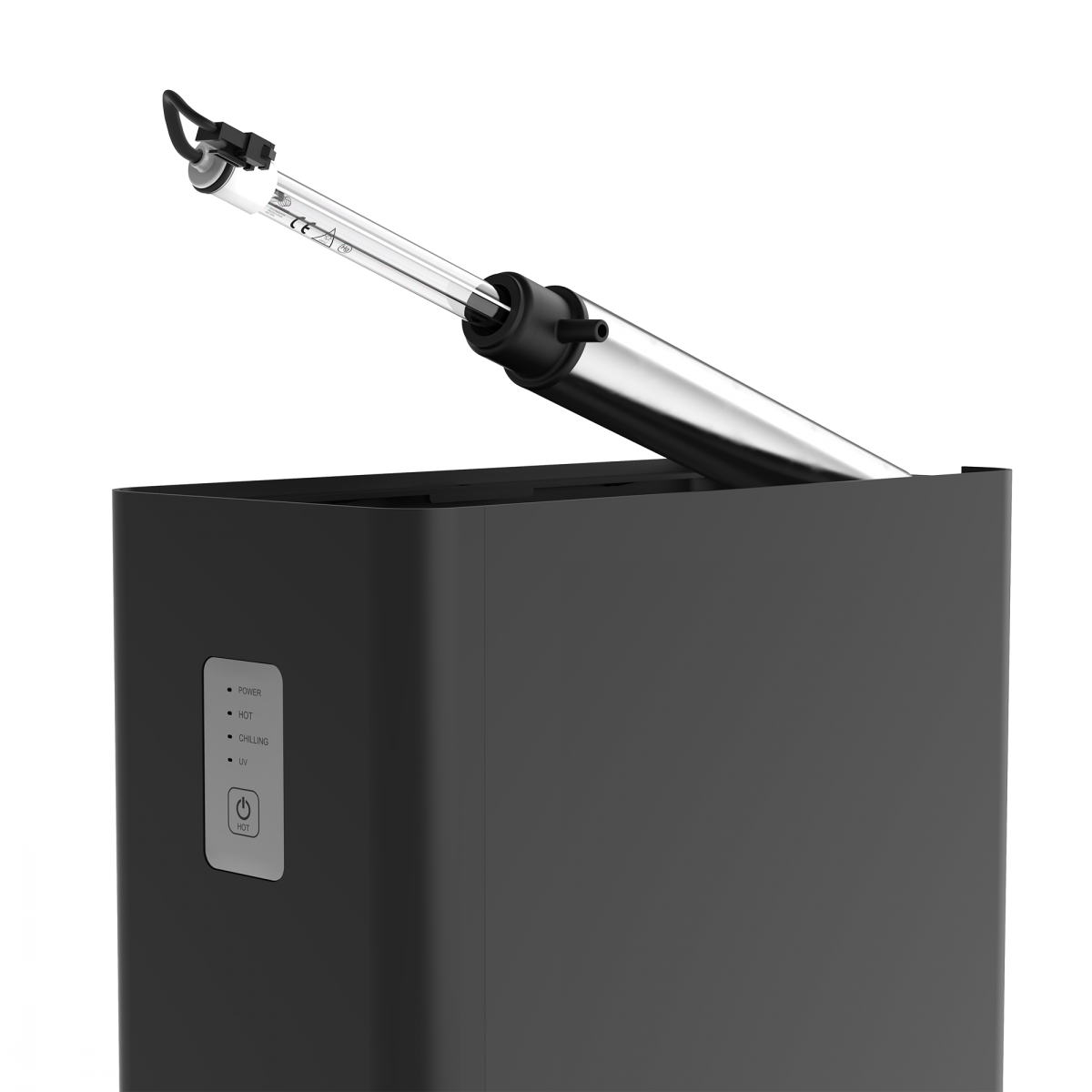 Instant-start UV sterilization operates while dispensing water. Replaceable high efficiency UV light eliminates 99.9% of germs without affecting the taste of cold / sparkling water due to temperature raise from traditional continuously on UV light.