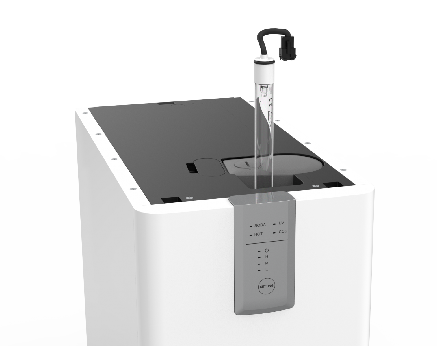 Instant-start UV sterilization operates while dispensing water. Replaceable high efficiency UV light eliminates 99.9% of germs without affecting the taste of cold / sparkling water due to temperature raise from traditional continuously on UV light.
