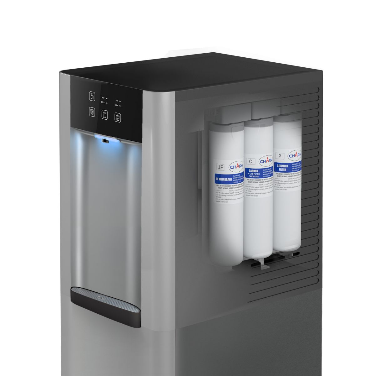 Designed to locate near the outlet with instant start system to make sure water is fully sterilized before dispense. Replaceable high efficiency UV light eliminates 99.9% of germs without increasing water temperature or affecting the taste of cold and sparkling water due to heat generated from continuously on UV light