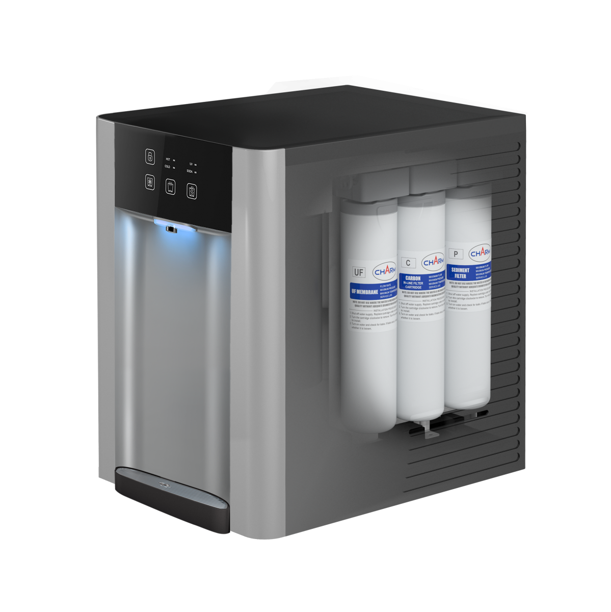 Designed to locate near the outlet with instant start system to make sure water is fully sterilized before dispense. Replaceable high efficiency UV light eliminates 99.9% of germs without increasing water temperature or affecting the taste of cold and sparkling water due to heat generated from continuously on UV light