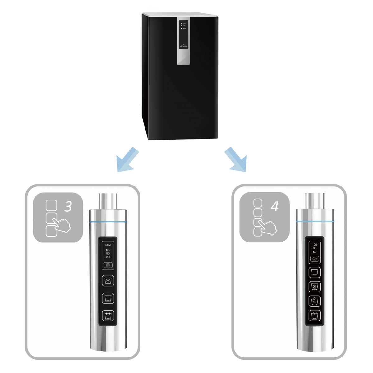 3 water option: cold/hot/sparkling, cold/ambient/sparkling, cold/hot/ambient