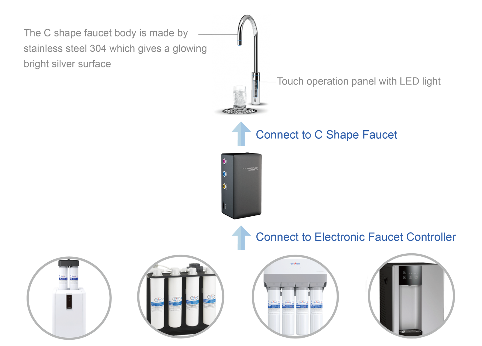 Cold/Sparkling/Ambient water pipe: Φ 6.35 mm Hot water pipe: Φ 5.5 x 8.5 mm |